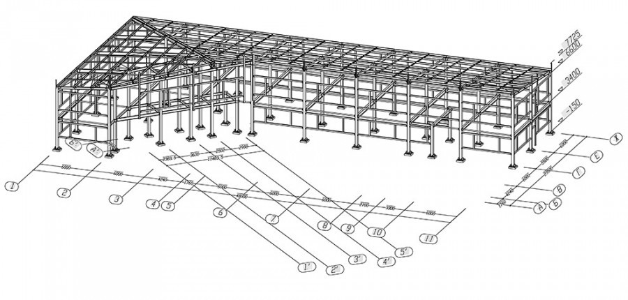 Каркас выполнен без связевых блоков.
