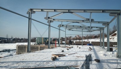 Один из наших последних объектов — ведём монтаж металлоконструкций спортивного комплекса в г. Сходня.