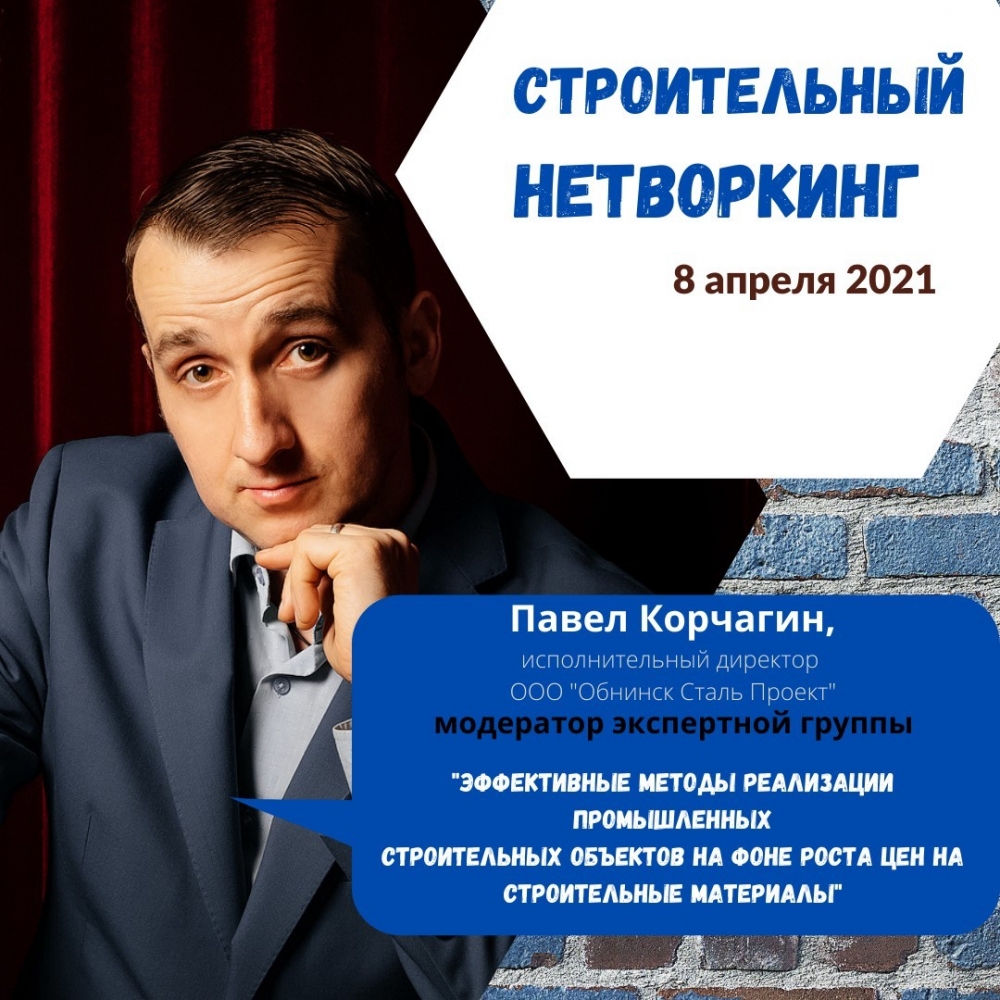 ️8 апреля 2021 года завершаем первый этап "Строительного нетворкинга" @tppkaluga ! Приглашаем обсудить "Эффективные методы реализации промышленных строительных объектов на фоне роста цен на строительные материалы" в рамках заседания экспертной группы, которую модерирует исполнительный директор ГК "Обнинск Сталь Проект" @korchaginpv82 .