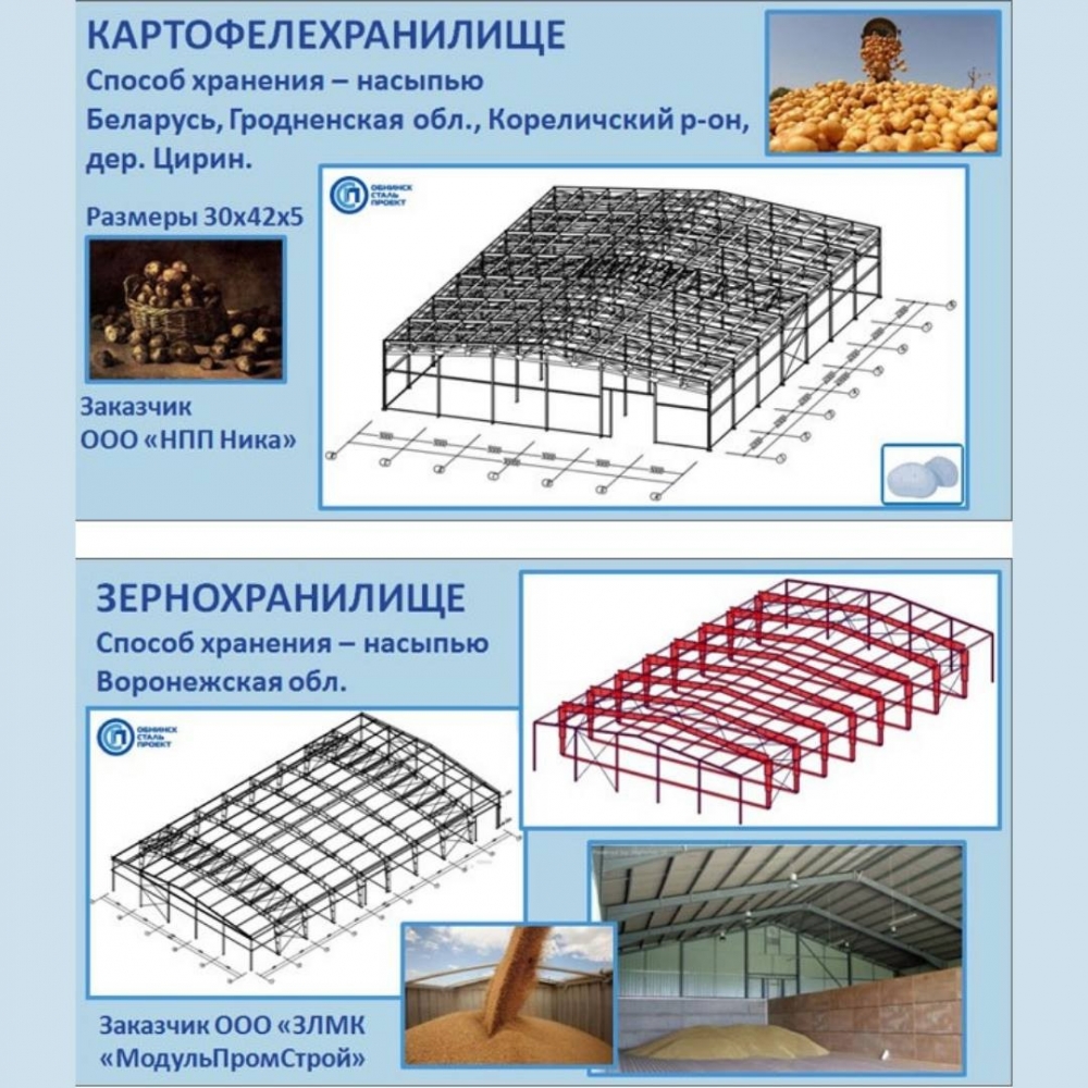 Для сельского хозяйства команда компании Обнинск Сталь Проект работает в следующих направлениях: